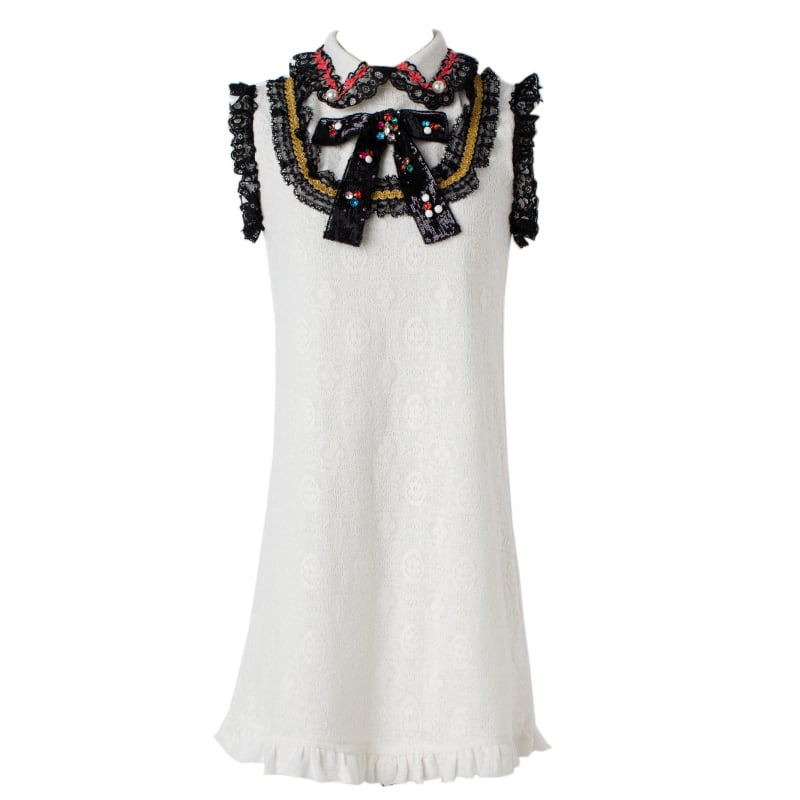 全体はレース生地で、裾や襟元や袖口はフリルになっています。