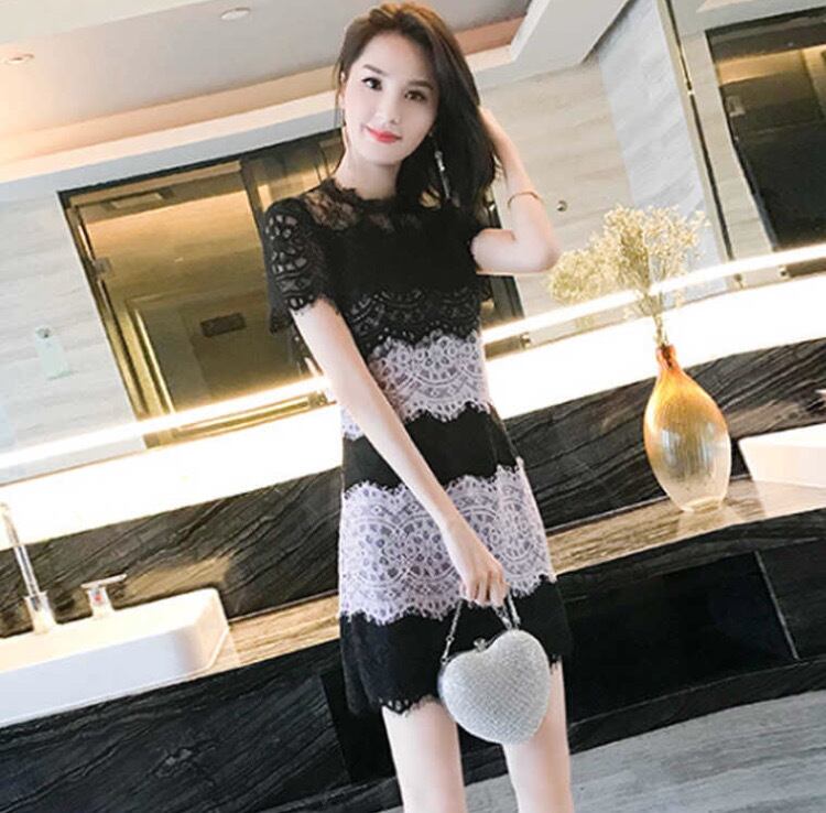 2色のレースを使った大人可愛いワンピース♪結婚式やパーティーにもオススメ!S〜XXLまでサイズ 豊富☆ C30054