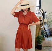 2018秋新作!レトロな襟付きプリーツワンピース♪通勤・通学にもおすすめ! C30126