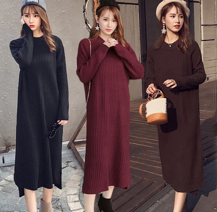 2018秋冬新作のリブ編み膝下丈ニットワンピース♪