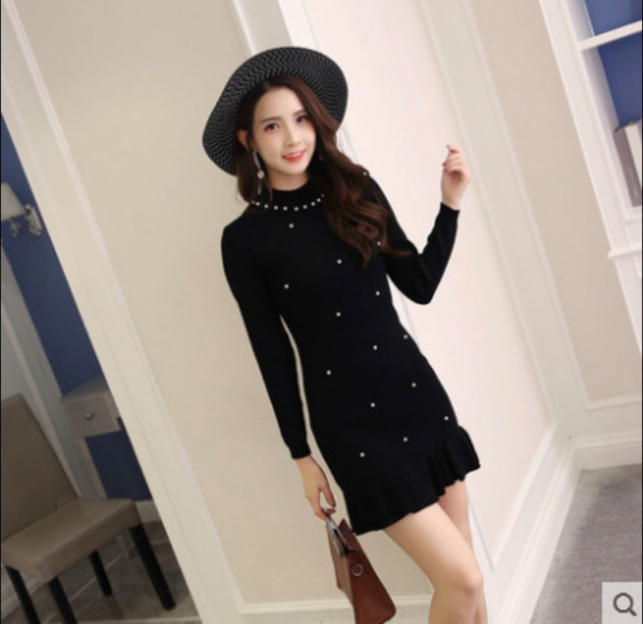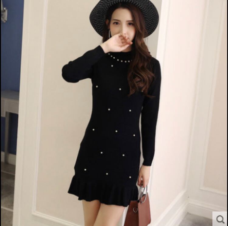 2018秋冬新作!パールが散りばめられた 気品のあるニットワンピース♪ C30251