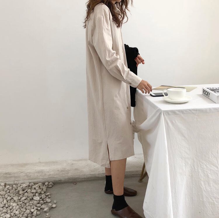 2018秋冬新作!優しいコットン×リネンのシャツワンピース♪