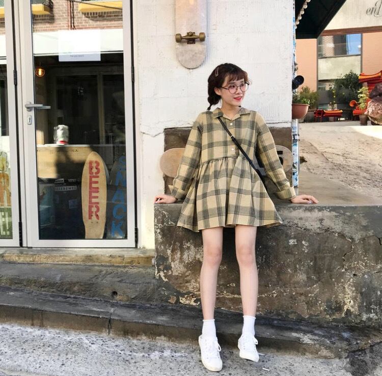 2018秋冬新作!ガーリースタイル☆レトロチェックなミニ丈シャツワンピース♪