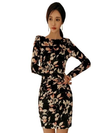 秋冬大活躍♪ 上品なフラワーワンピース お呼ばれ 女子会 デート 結婚式二次会 2018年新作 D40022