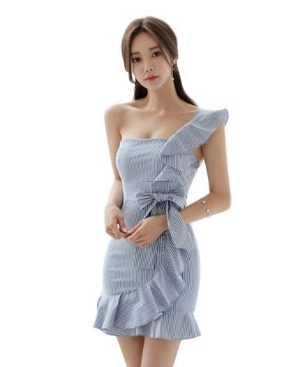 フリル付きワンショルダーワンピース♪ お呼ばれ 女子会 デート 結婚式二次会 2018年新作 D40045