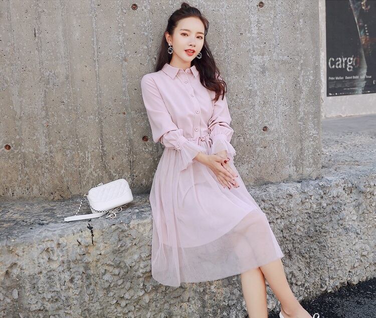 ベルスリーブひざ丈シースルーワンピース♪ 長袖 透け感 デート 女子会 おでかけ H80222