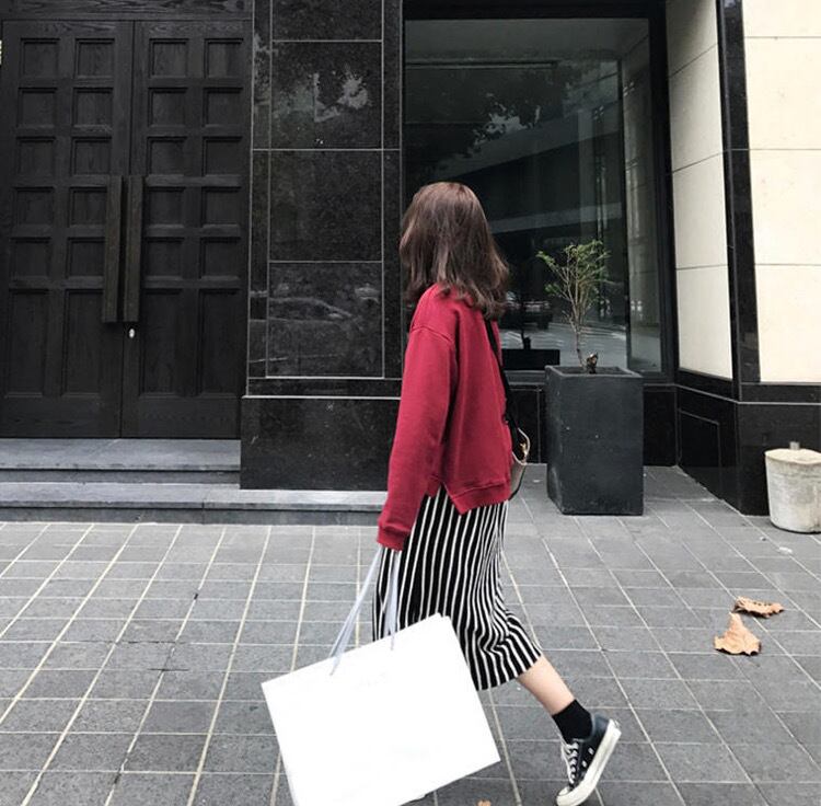2018秋冬新作!ストライプペンシルスカート×重ね着用ゆったりスウェットセーターのセットアップ♪