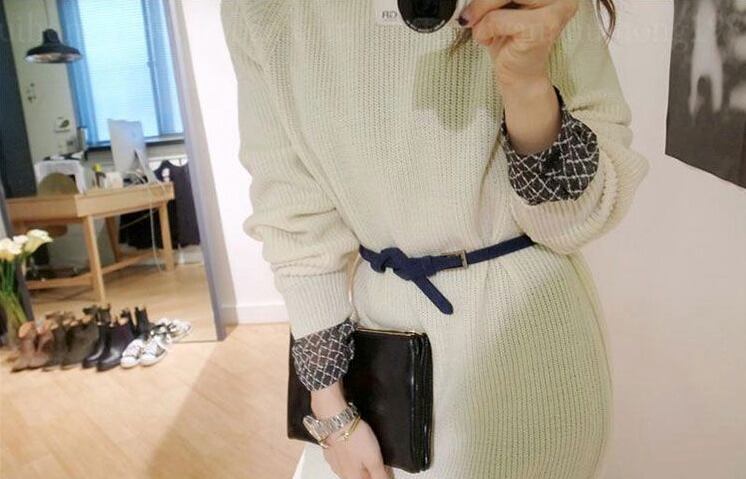2018秋冬新作!チェックとドッドの組み合わせオシャレなワンピース×重ね着用オーバーサイズロングニットのセットアップ♪ C30502