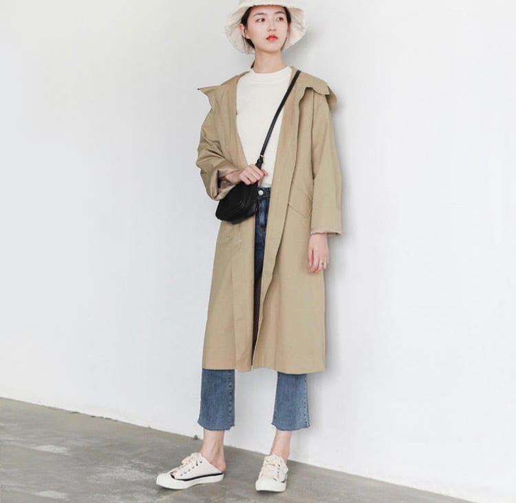 2018秋冬新作!春秋にも着用出来る、コットン素材のフード付きロングウィンドブレーカー♪大人ベーシックコーデ☆ C30530