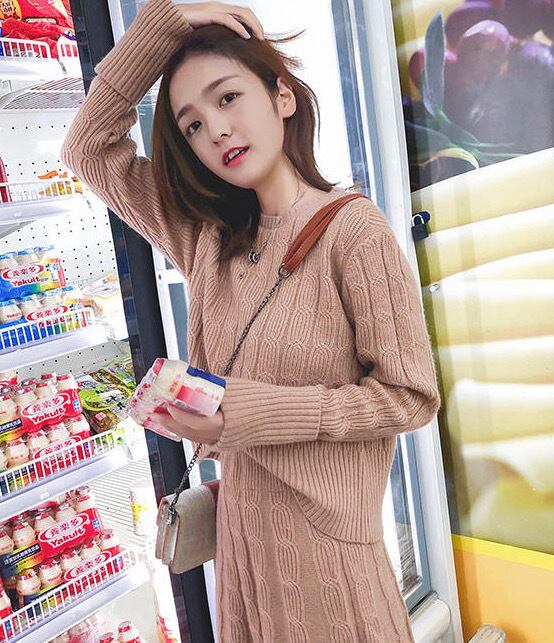 2018秋冬新作!清楚で気品のある、ラウンドネックニットセーター×ニットフレアスカートのセットアップ♪ C30571