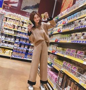 2018秋冬新作!ラウンドネック&フレアスリーブのニットセーター×ニットワイドパンツのセットアップ♪ C30572