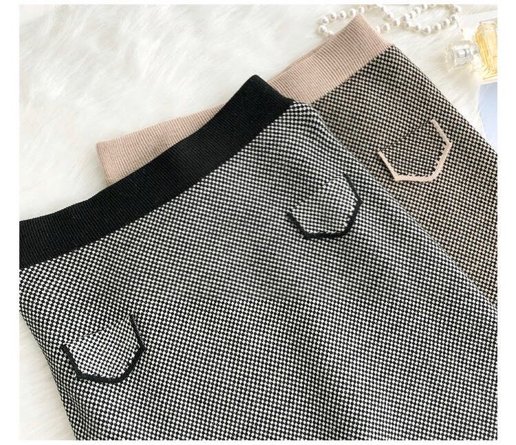2018秋冬新作!細かい千鳥柄が清楚で気品のある、ラウンドネックニットセーター×ニットペンシルスカートのセットアップ♪