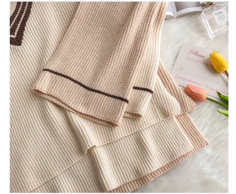 2018秋冬新作!清楚で気品のある、フレアスリーブのVネックニットセーター×前ポケットつきニットスカートのセットアップ♪ C30623