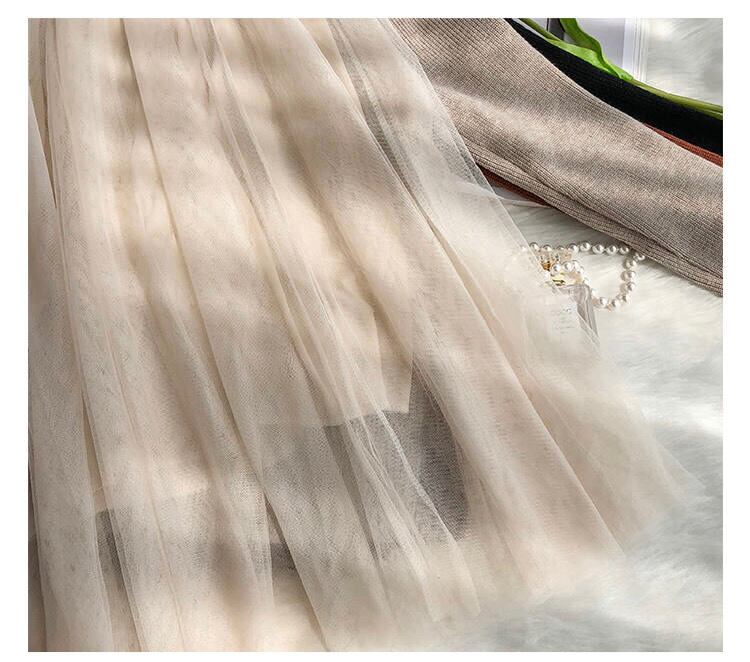 2018秋冬新作!清楚で気品のある、ガーゼシフォンのワンピース×重ね着用リブ編みラウンドネックセーターのセットアップ♪ C30628