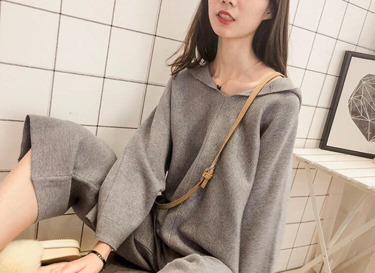 2018秋冬新作!フード付きニットセーター×ニットガウチョパンツのセットアップ♪ C30649