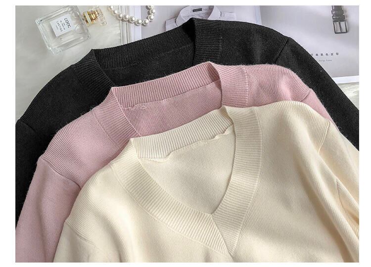 2018秋冬新作!女性らしいVネックニットセーター×ニットフレアスカートの清楚で気品のあるセットアップ♪