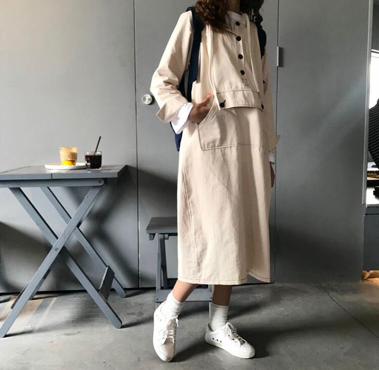 2018秋冬新作!大きなポケットが可愛い、ルーズなフード付きトレーナーワンピース♪