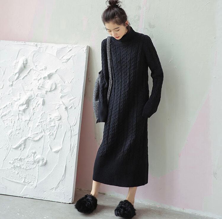 2018秋冬新作!ケーブル編みがオシャレな、タートルネックニットワンピース♪