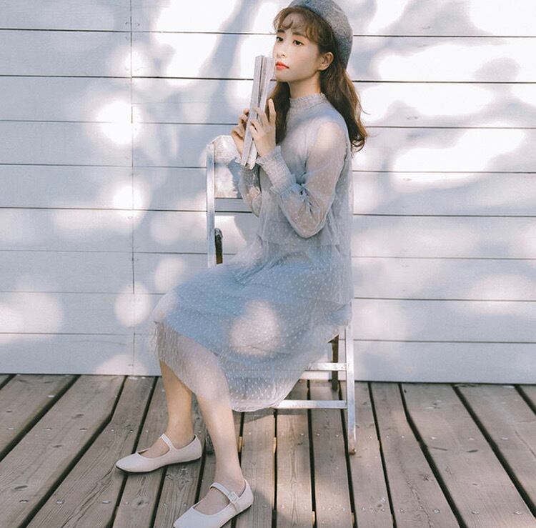 2018秋冬新作!ドッドのレースとフリルがオシャレな、清楚で気品のあるワンピース♪