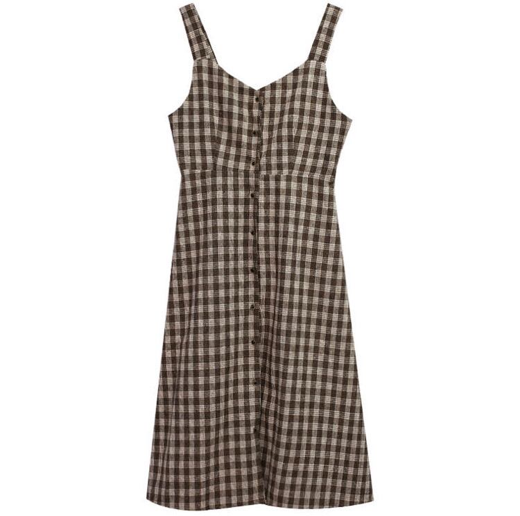 2018秋冬新作!トレンドのレトロチェック☆清楚で気品のある、レトロチェックの膝下丈ストラップワンピース♪ C30695