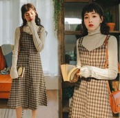 2018秋冬新作!清楚で気品のある、レトロチェックの膝下丈ストラップワンピース♪