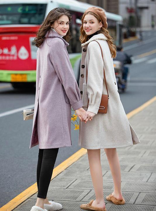 2018秋冬新作!トレンドのレトロ☆大きめボタンとポケットがレトロな印象を与える、暖かなウールコート♪XS〜XLまで☆ C30783