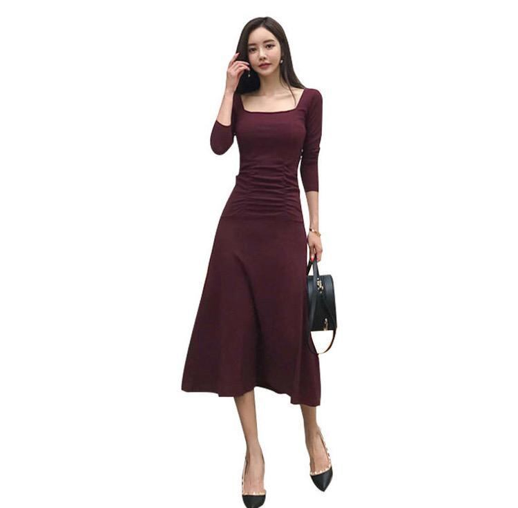 2018秋冬新作!ボディラインが綺麗に際立ち女性らしい、清楚で気品のあるフレアスカートのワンピース♪