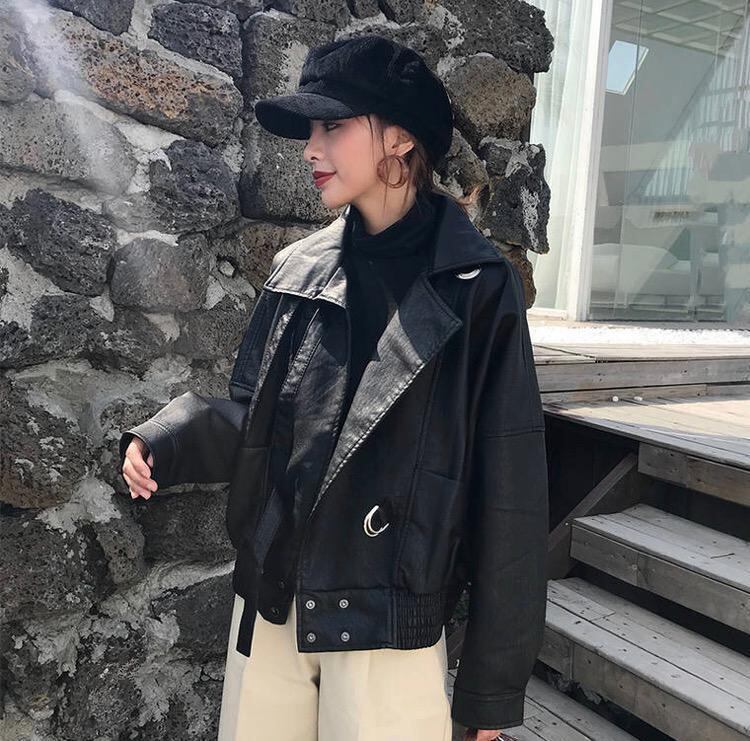 2018秋冬新作!オシャレなレザーアイテム☆オーバーサイズめで、ルーズに着こなす、ライダースジャケット♪甘辛スタイル☆ C30901