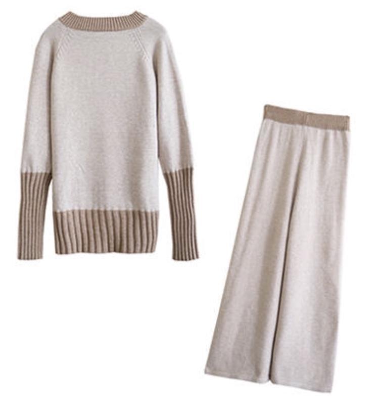 バイカラー セットアップ ステップドヘム ニット デート イベント 旅行 行事 E50085