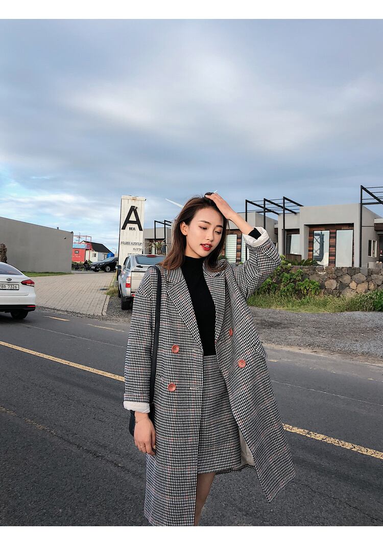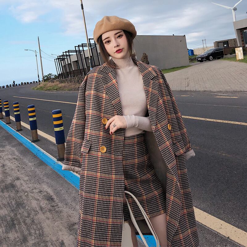 定番チェック柄 オーバーサイズ コート ミニスカート セットアップ 合コン 女子会 旅行 E50174