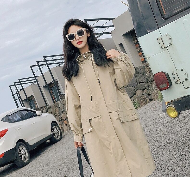 フード付きひざ下丈ジップアップコート♪ カジュアル デート おでかけ H80155